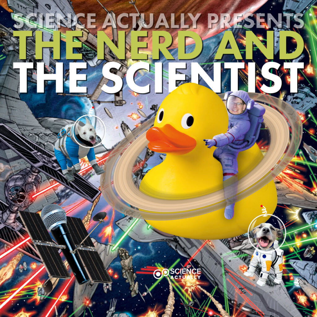 At last, Kovi and Benjamin meet again for the first time for the last time. It is a period of science skepticism in the world. A fledgling podcast, recording from a hidden location, had just finished their second season. During the recording, the podcasters kept quiet so as not to be discovered until they met the ultimate nerd, the first person to BUY THEIR T-SHIRT – a comfortable, all cotton garment powerful enough to have a rubber duck on it. With onlookers getting suspicious, and even beginning to laugh, they kept their recording brief and then raced home aboard their spaceship – custodians of the stolen plans that can save the galaxy…